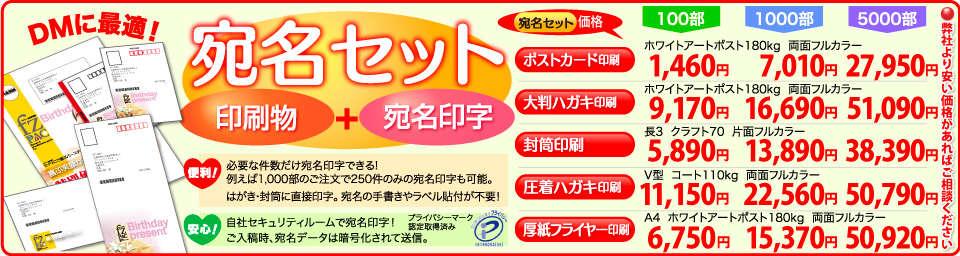 - 印刷後、宛名印字をした状態で納品する【宛名セット印刷】が新登場! DMやポストカードの発送にぜひご利用ください。