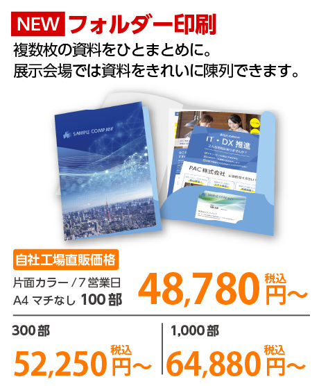 | A4 仕上がり | 二つ折り | 両面カラー | コート90 | 100部 | 3,980 円 | 1000部 | 9,450 円 |
