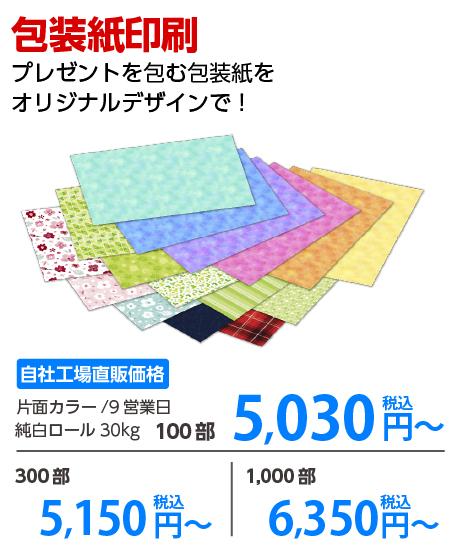 包装紙、リボン印刷をお喜びいただける価格でご提供。