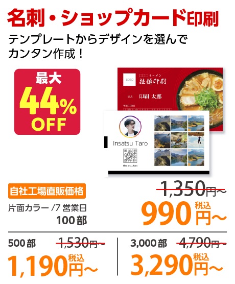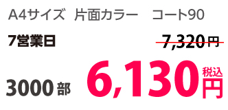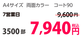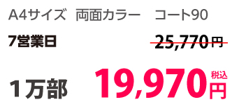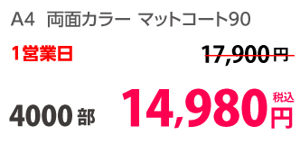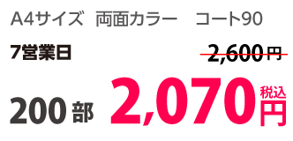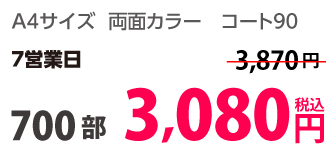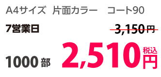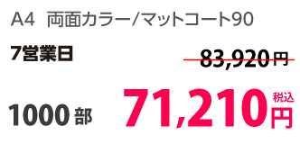 | A4 | コート90kg | 両面カラー | 100部 | 1,820 円 | 1000部 | 3,410 円 |