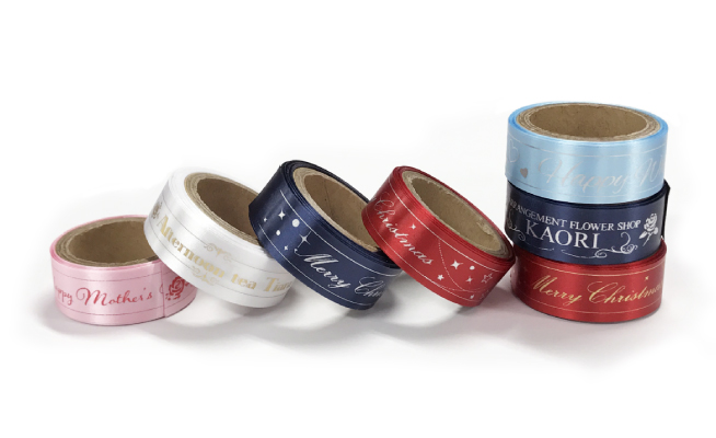 光沢鮮やかなリボンに一色刷りでオリジナルリボンを