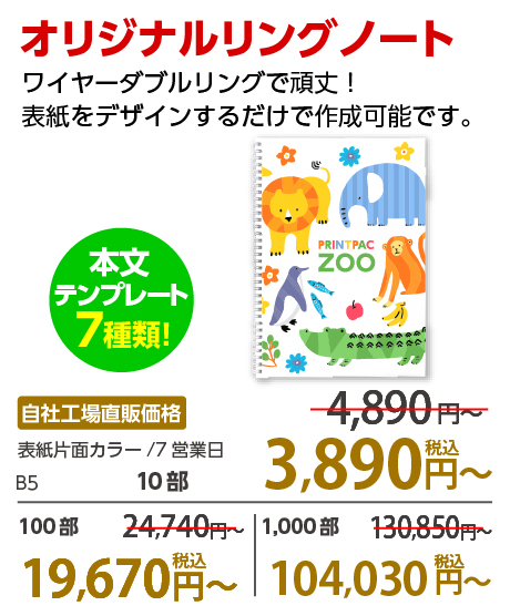 低価格、最小1,000部7,025円からご注文いただけ