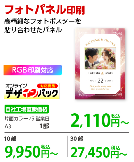 パネルに直接印刷しますので、届いてそのままご使用いただけます。