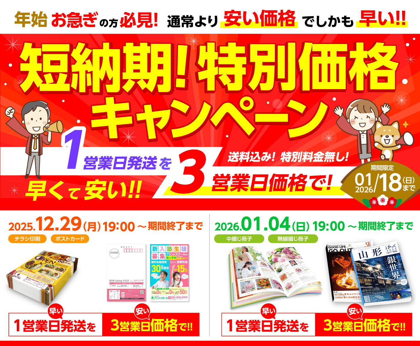 短納期に特化したキャンペーンを開催いたします!