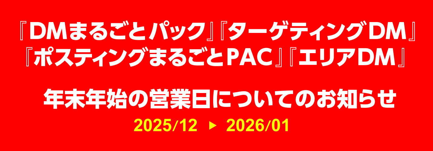 DMまるごとPAC/ターゲティングDM納期コース別 年内出荷可能受付締切