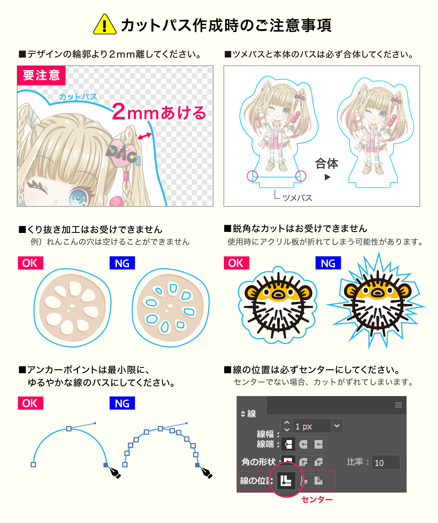 アクリルスタンド作成の際は必ずこちらのデータ作成ガイドをご覧の上