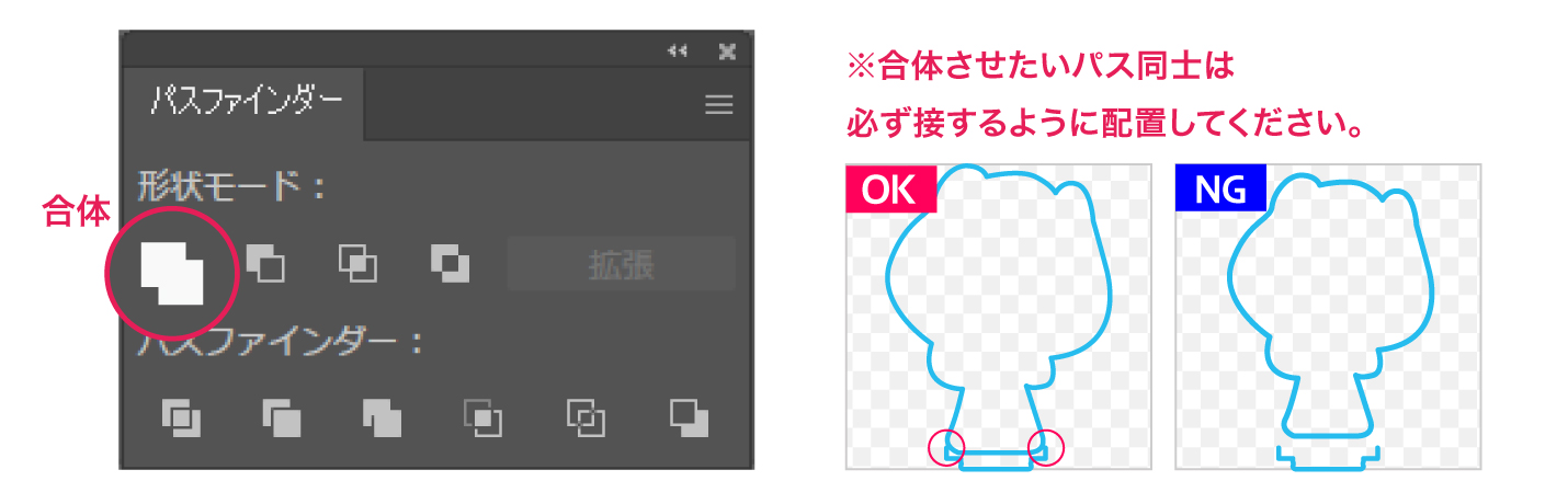 ウィンドウ > パスファインダー > 合体