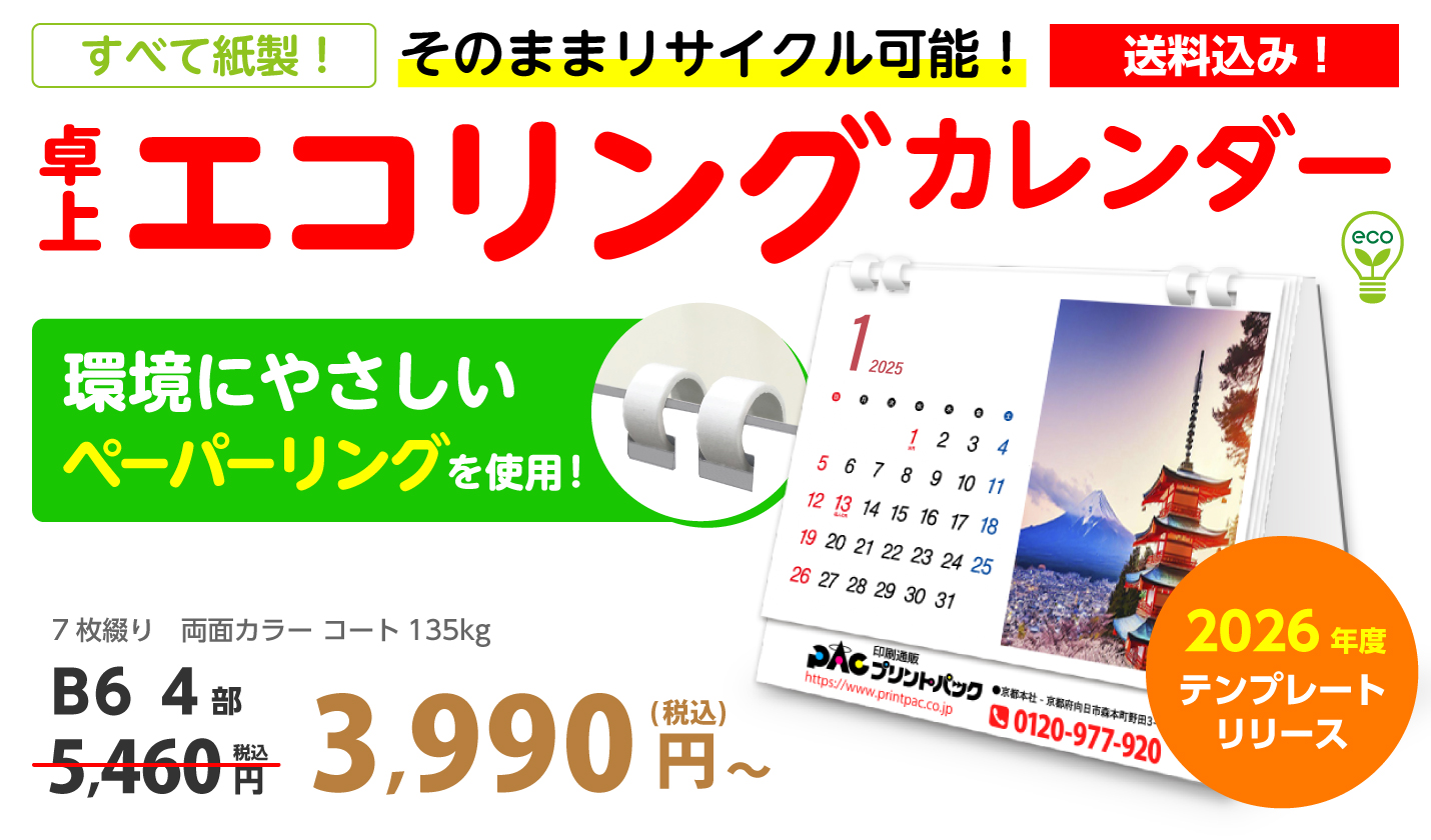 「全て紙製」のリサイクル可能なリングカレンダーです。