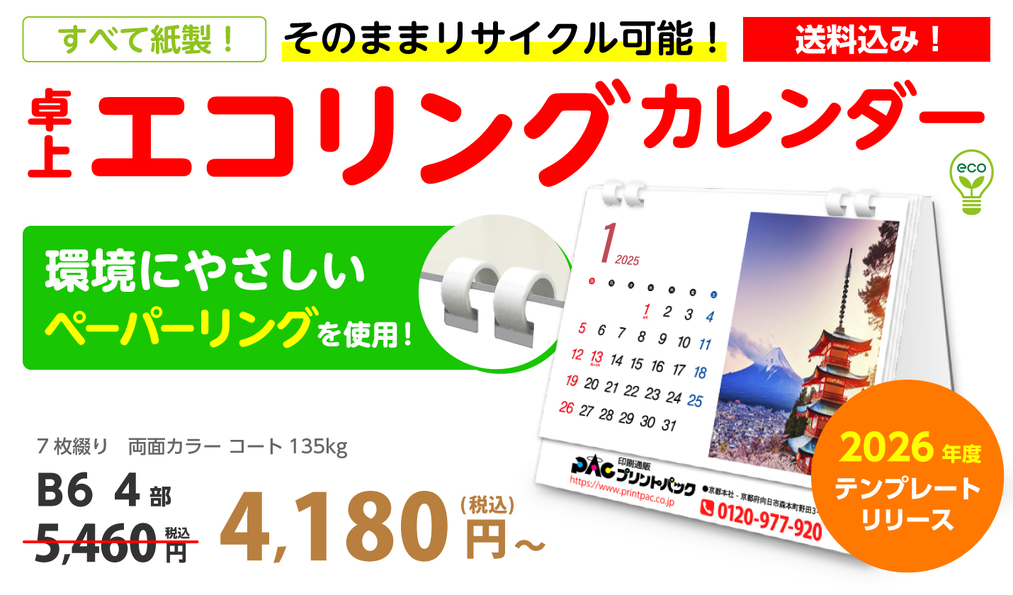 プリントパックの卓上エコリングカレンダーは
