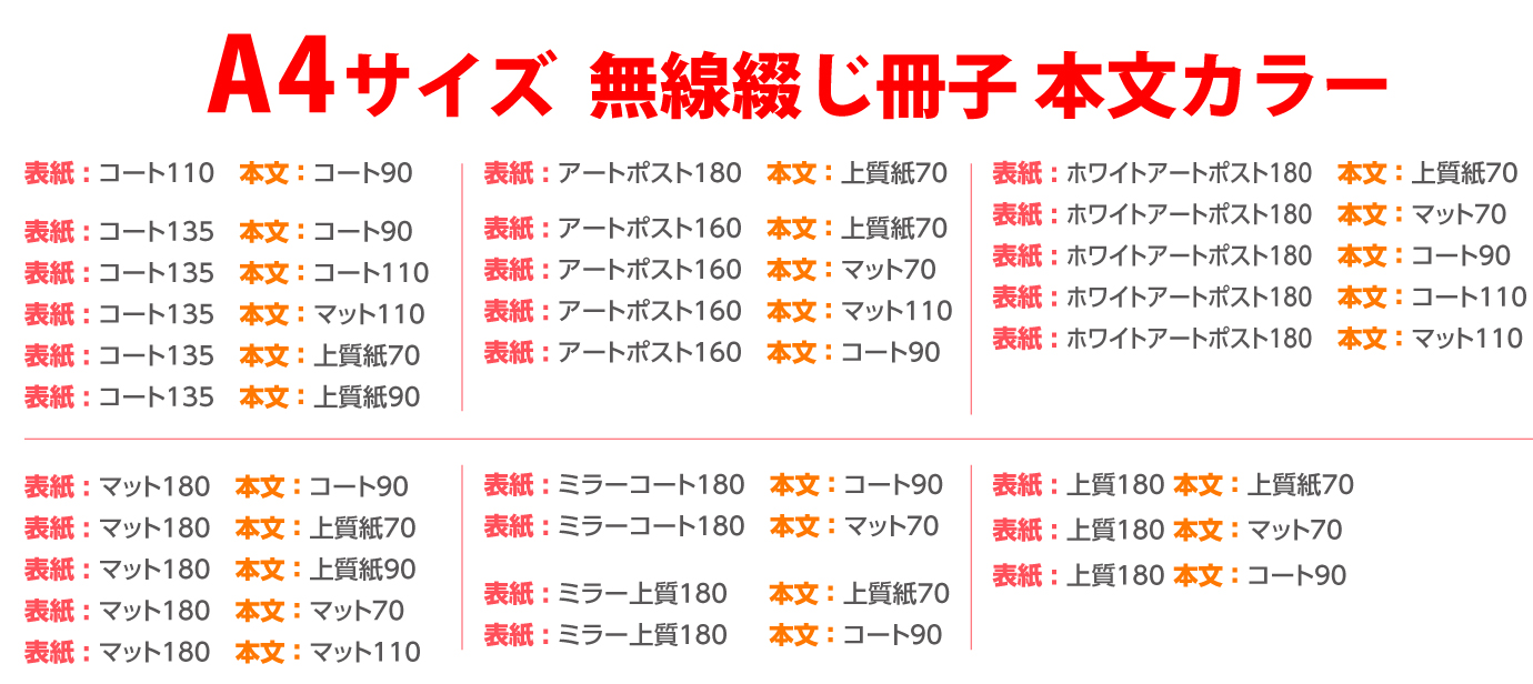 パンフレットなどにもおすすめです。表紙は【色上質 最厚口:27種類、レザック66 215kg:40種類】