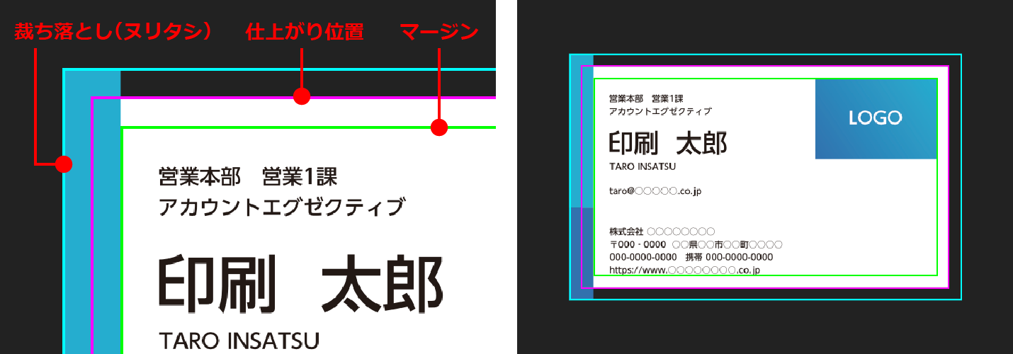 そのため、断裁位置ギリギリのサイズでデータ制作されますと、仕上がった状態でふちに白い部分が出てきます。