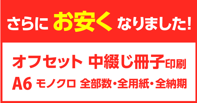 A4サイズのオフセット中綴じ冊子が、対応範囲拡大でさらにお得になりました。