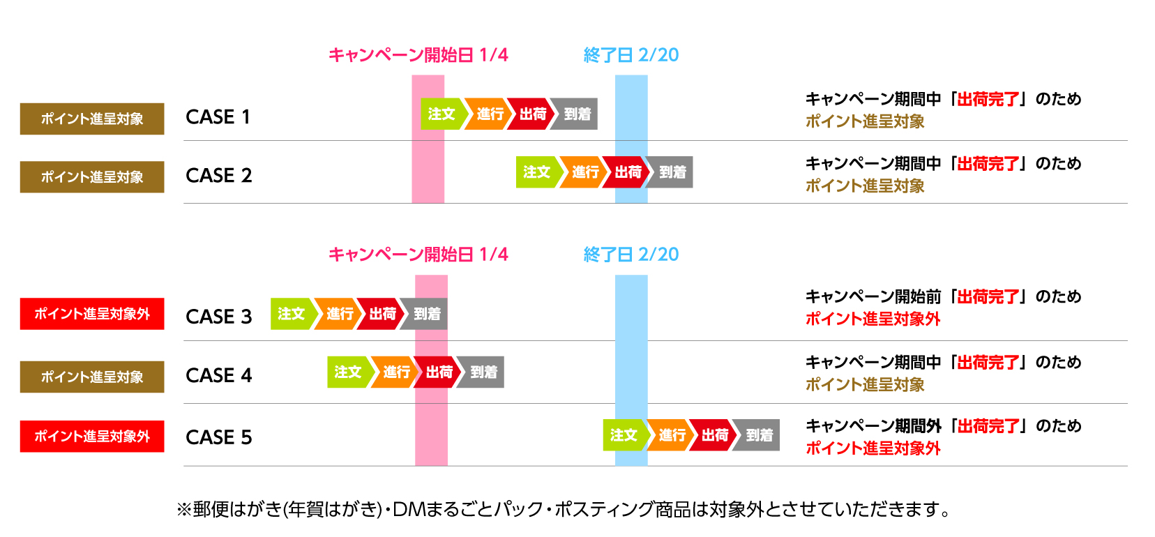 ※郵便はがき(年賀はがき)・DMまるごとパック・ポスティング商品は対象外とさせていただきます。