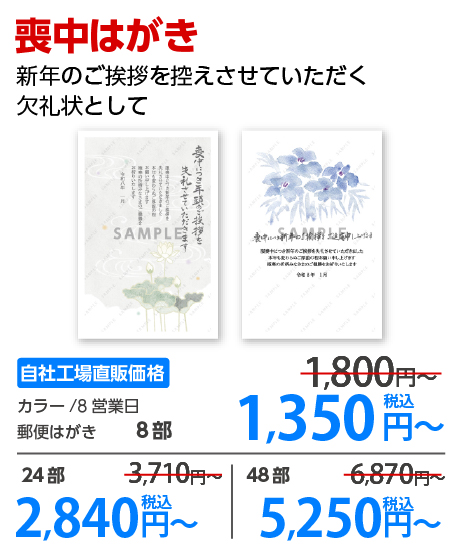 プリントパックの喪中はがき印刷は、お好きなデザインの
