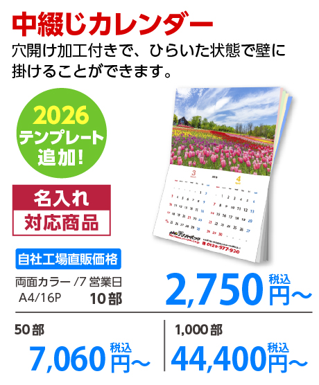 冊子型になった中綴じカレンダーです。穴開け加工が
