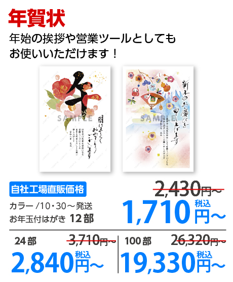 宛名印刷無料・お年玉付き年賀はがき代込み価格!