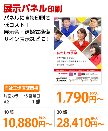 ウェルカムボード、写真展、店内のPOP、イベントパネルなどの商品のアピールに最適な展示パネル印刷です。