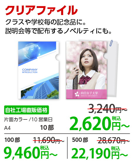 | 片面カラー | 100部 | 670 円 | 5000部 | 7,020 円 | ||