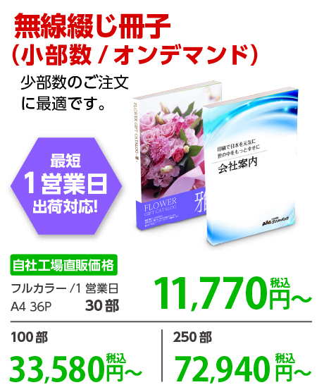 短納期・小部数で冊子作成される際に大変便利です。