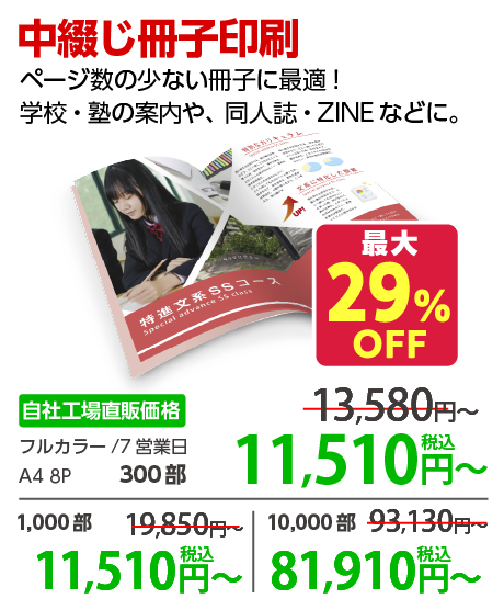 | 24P | 500部 | 35,810 円 | 5,000部 | 134,010 円 | |||