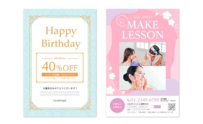 会計時、レシートと一緒にお渡ししたり、レジ横に置いておくだけでも宣伝効果抜群。