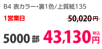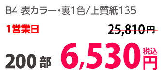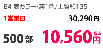 | B4 | コート90kg | 両面カラー | 100部 | 3,870 円 | 1000部 | 6,980 円 |