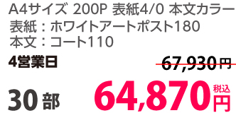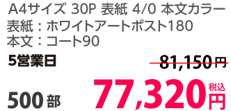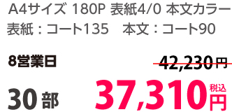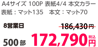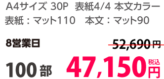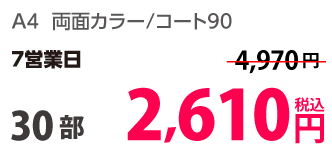 | A4 | 両面カラー | コート90/コート90 | 8P | 30部 | 2,610 円 | 100部 | 4,190 円 |