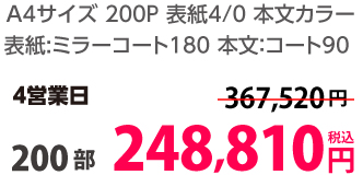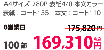 | A4 | 表紙・本文カラー | コート90/コート110 | 24P | 10部 | 3,090 円 | 100部 | 12,690 円 |
