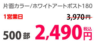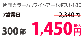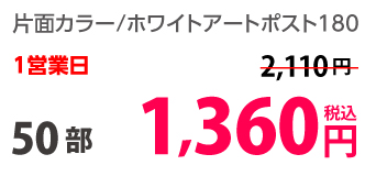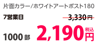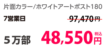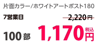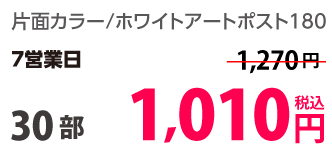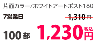 | はがきサイズ | ホワイトアートポスト180 | 両面カラー | 10部 | 1,330 円 | 30部 | 1,420 円 |