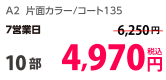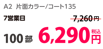 | A2 | 片面カラー | コート135kg | 100部 | 6,290 円 | 1,000部 | 13,950 円 |