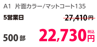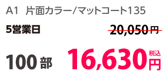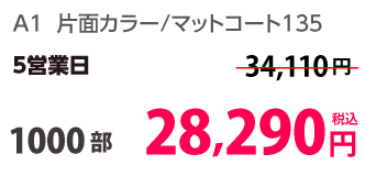 | A1 | 片面カラー | コート135kg | 100部 | 15,790 円 | 1,000部 | 26,530 円 |