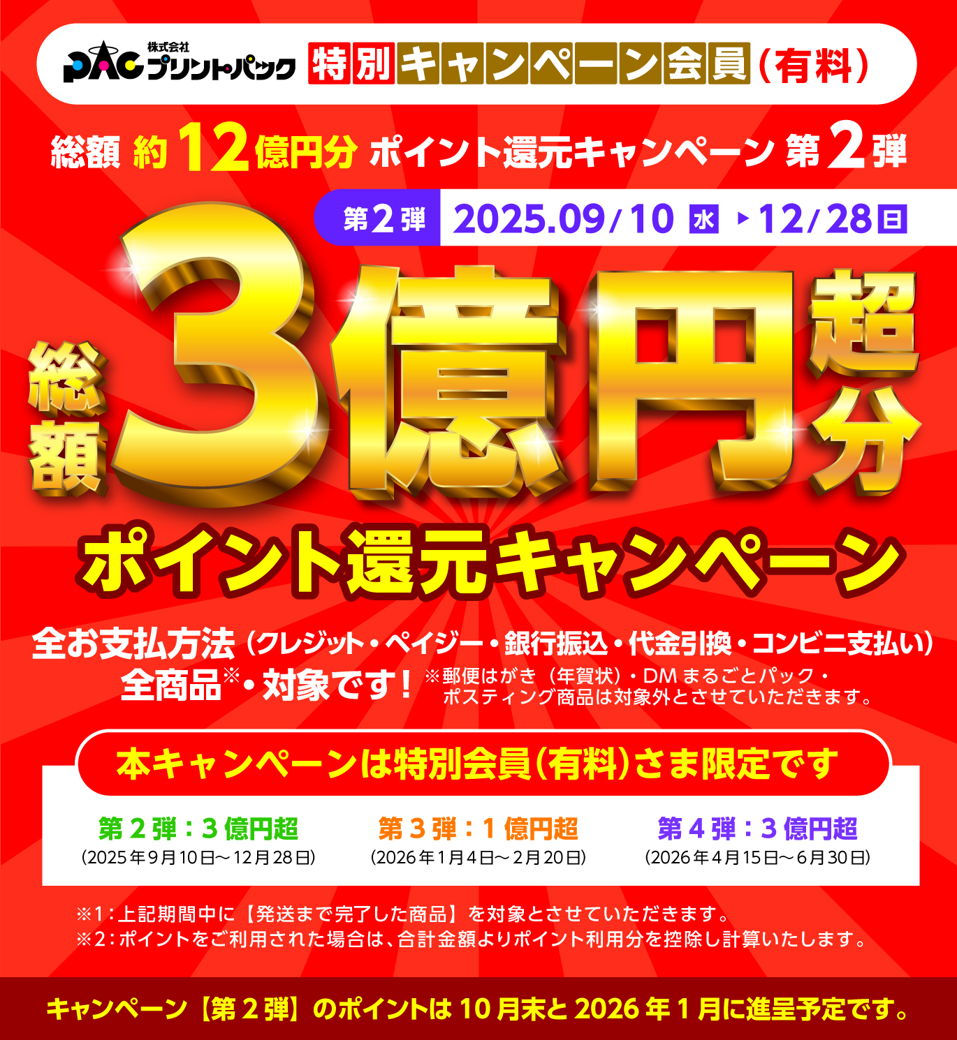 第二弾 総額3億円超分ポイント 還元キャンペーン(詳しくは下記表参照)