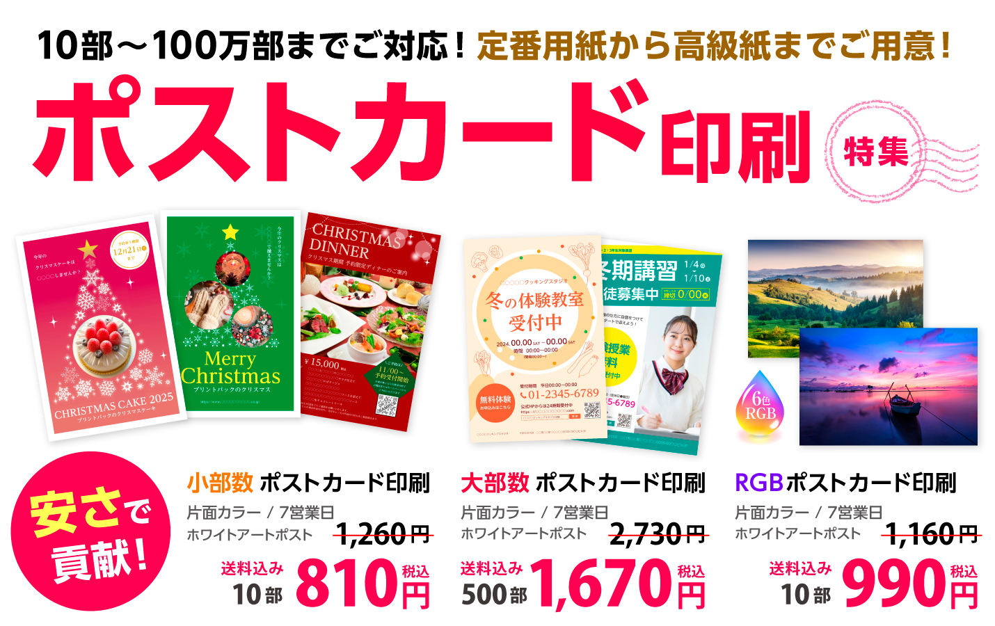 プリントックのポストカード印刷は業界最安値でどこよりも安くご用意しております。