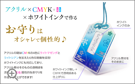 従来のお守りとしての要素も持ちつつ、耐久性・デザイン性を兼ね備えたアクリルお守り。