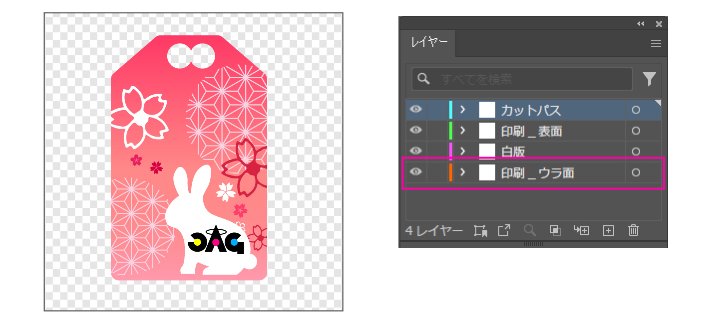 「印刷_ウラ面」レイヤーにデザインを配置します。