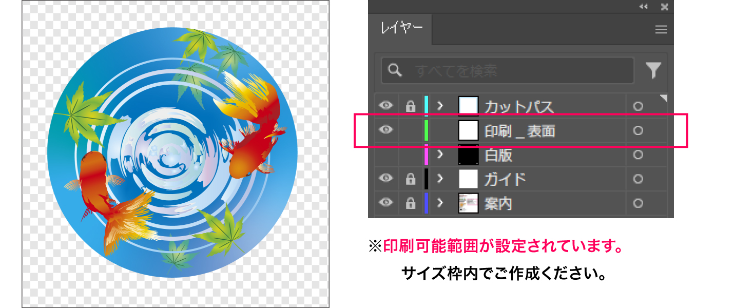 「印刷_表面」レイヤーにデザインを配置します。
