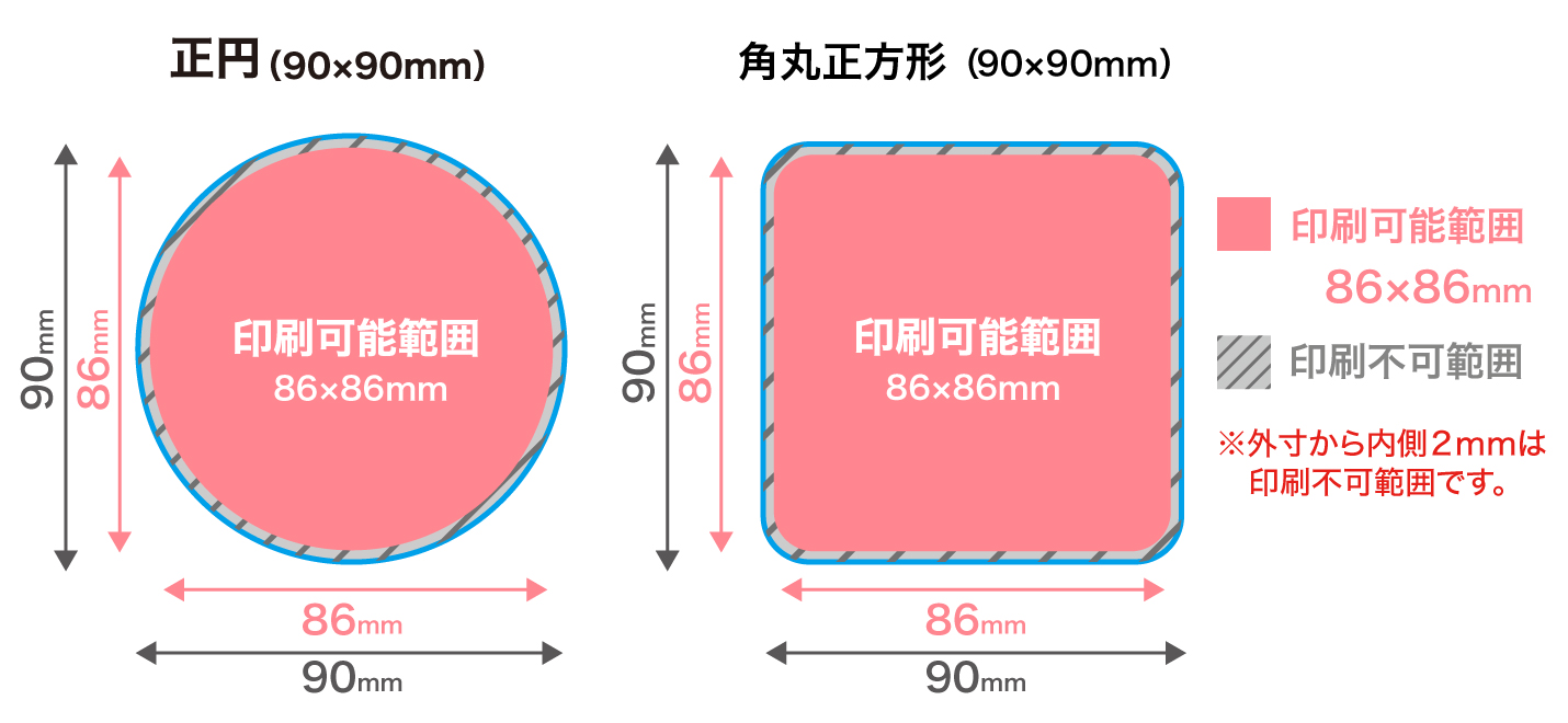 円形(90×90mm) 角丸正方形(90×90mm) |