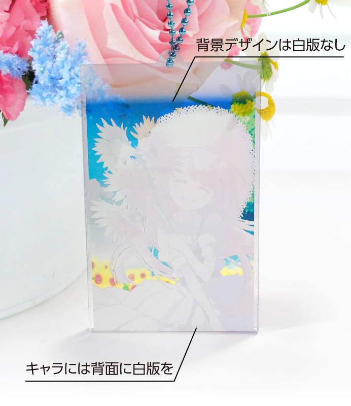 ※白版を敷くことで表面デザインの発色が良くなります。また、両面印刷の場合白版を敷くことで、