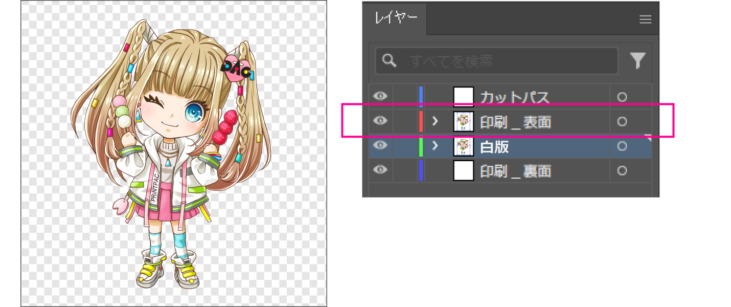 「印刷_表面」レイヤーにデザインを配置します。