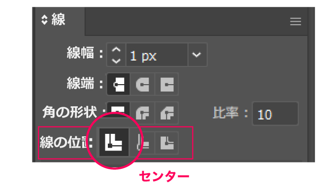 線の位置は必ずセンターにしてください。
