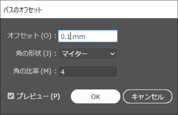 オブジェクト>パス>パスのオフセットを開き