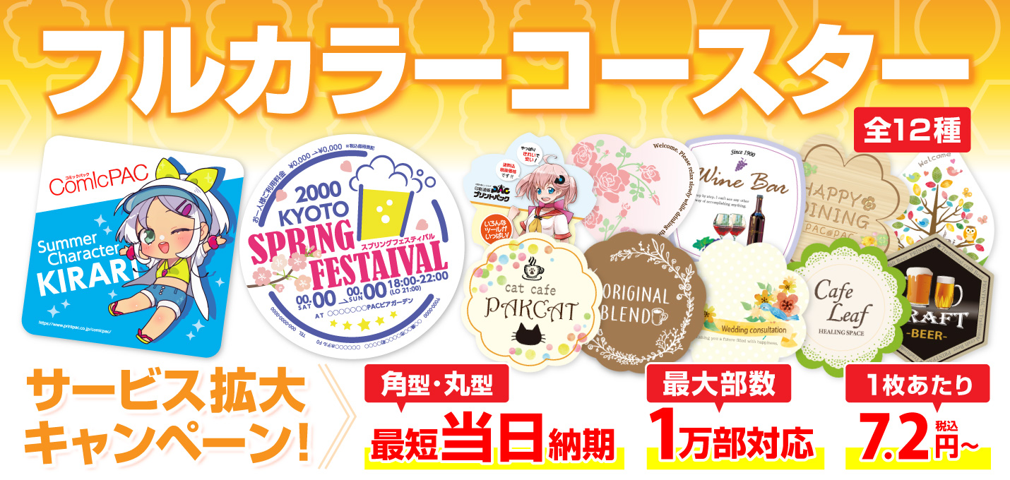 フルカラーコースター | 印刷のことなら印刷通販【プリントパック】