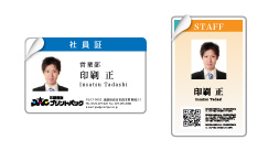 IDカードサイズのシール印刷です。社員証や入館証などネームカードとしてはもちろん、各種カードの着せ替え用シールとしてもおすすめ。