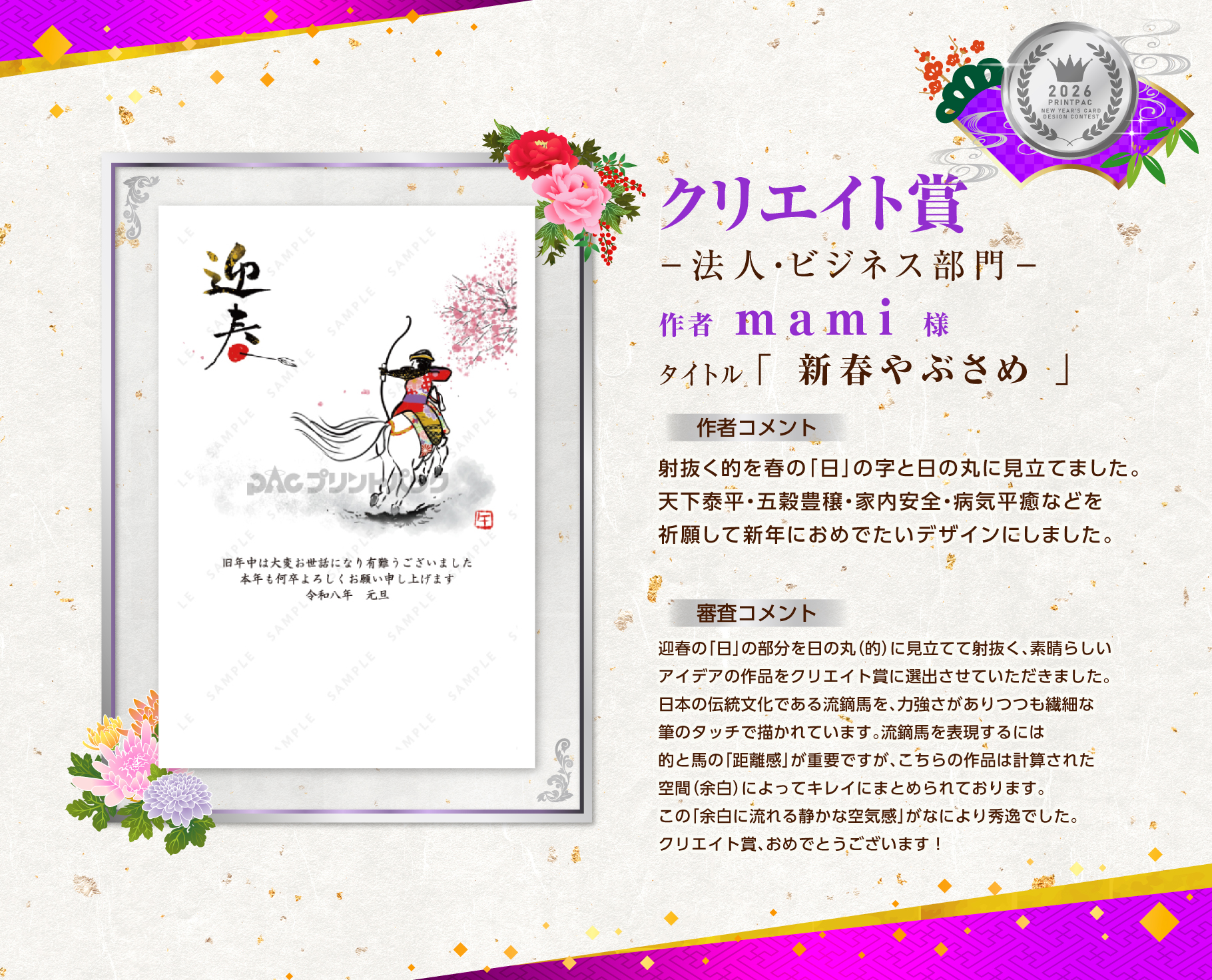 法人・ビジネス部門より mami様 作「新春やぶさめ」