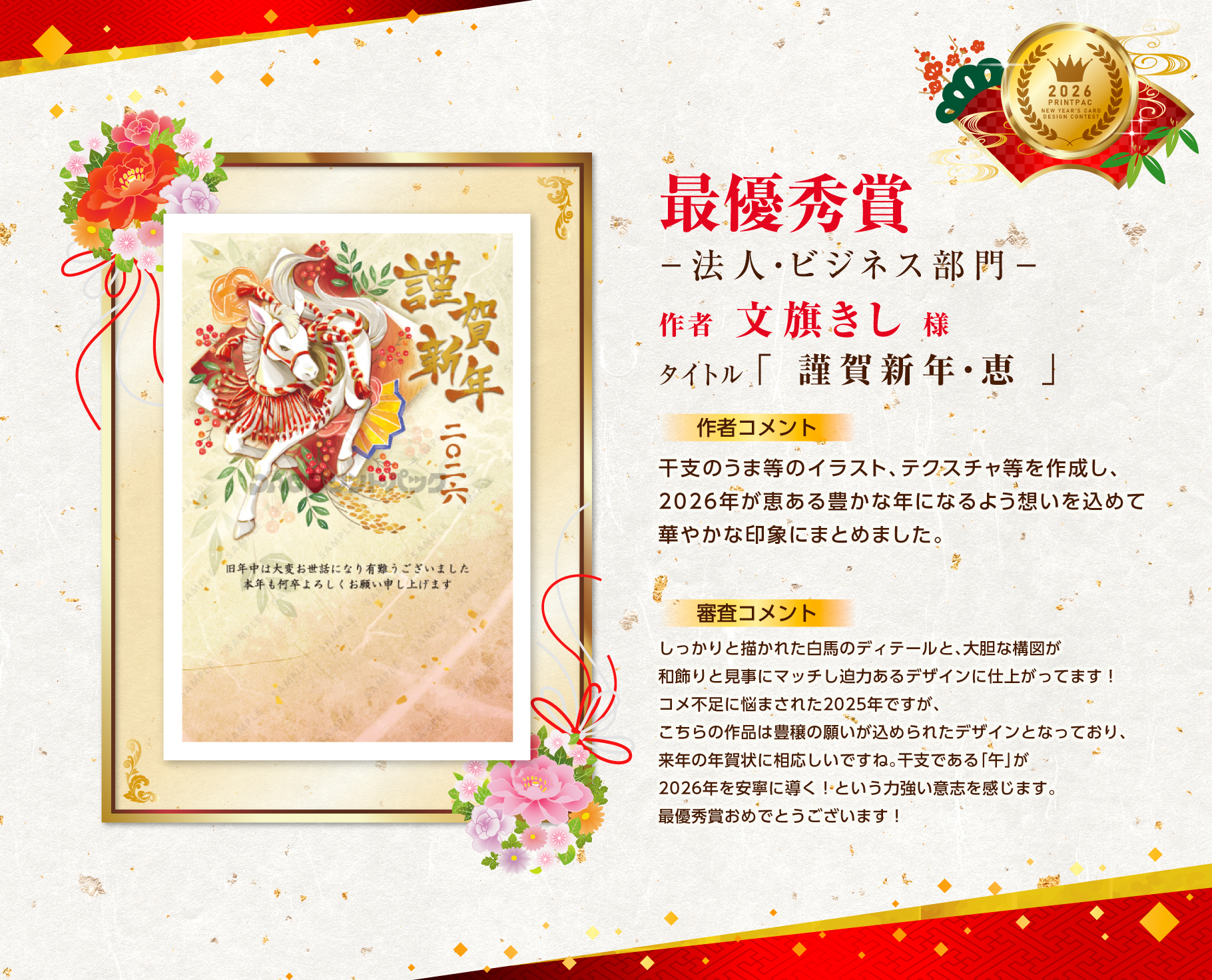 法人・ビジネス部門より 文旗きし様 作「謹賀新年・恵」