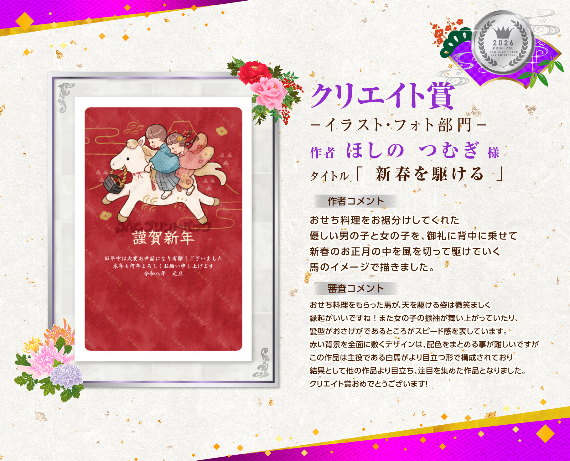 イラスト・フォト部門より ほしの つむぎ様 作「新春を駆ける」の