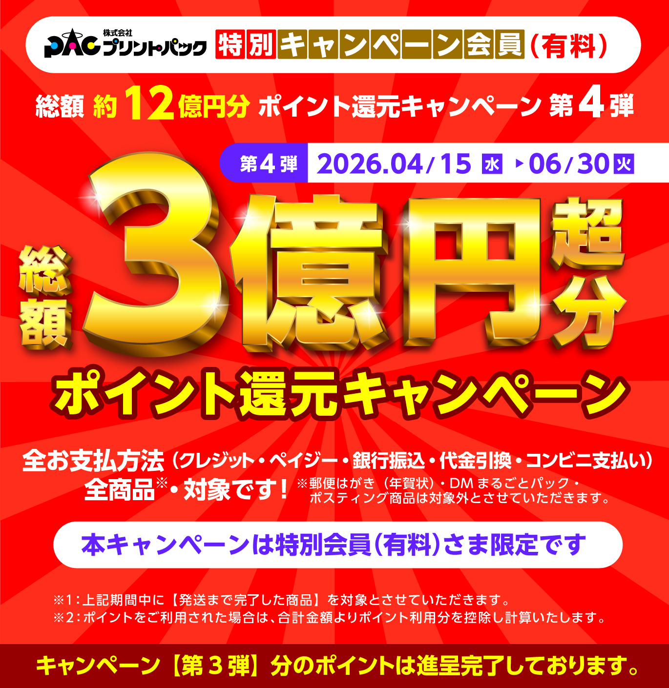 第4弾「3億円超分 ポイント還元キャンペーン」を